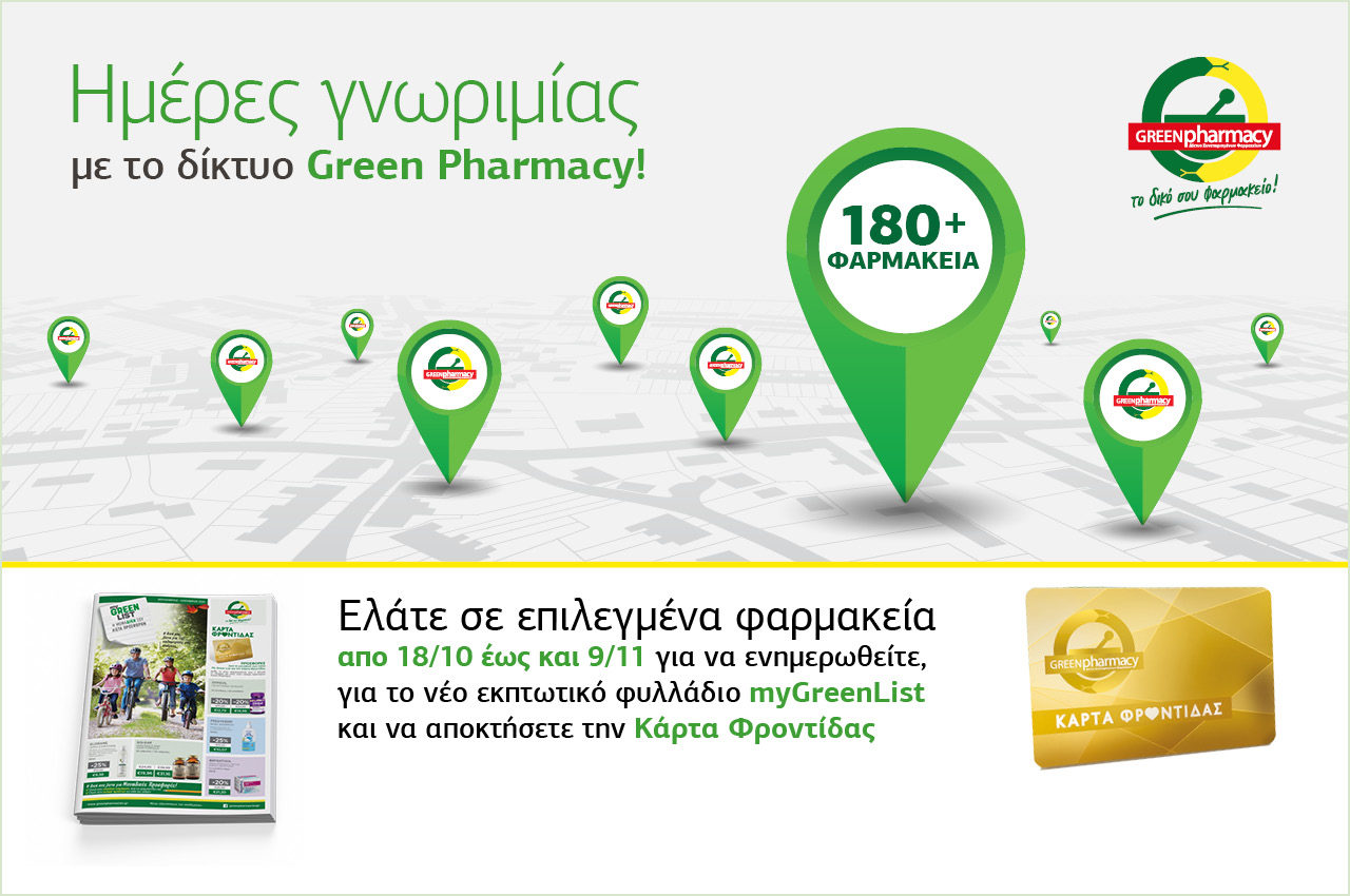 Έτσι για τον Οκτώβριο και το Νοέμβριο δίνεται η ευκαιρία στους επισκέπτες των φαρμακείων να γνωρίσουν από κοντά τους φαρμακοποιούς του δικτύου και να ενημερωθούν υπεύθυνα τόσο για τα πλεονεκτήματα του δικτύου και της “Κάρτας Φροντίδας”, όσο και για άλλα θέματα υγείας που τους απασχολούν καθώς και να επωφεληθούν από τις προσφορές της “myGreenList”.
